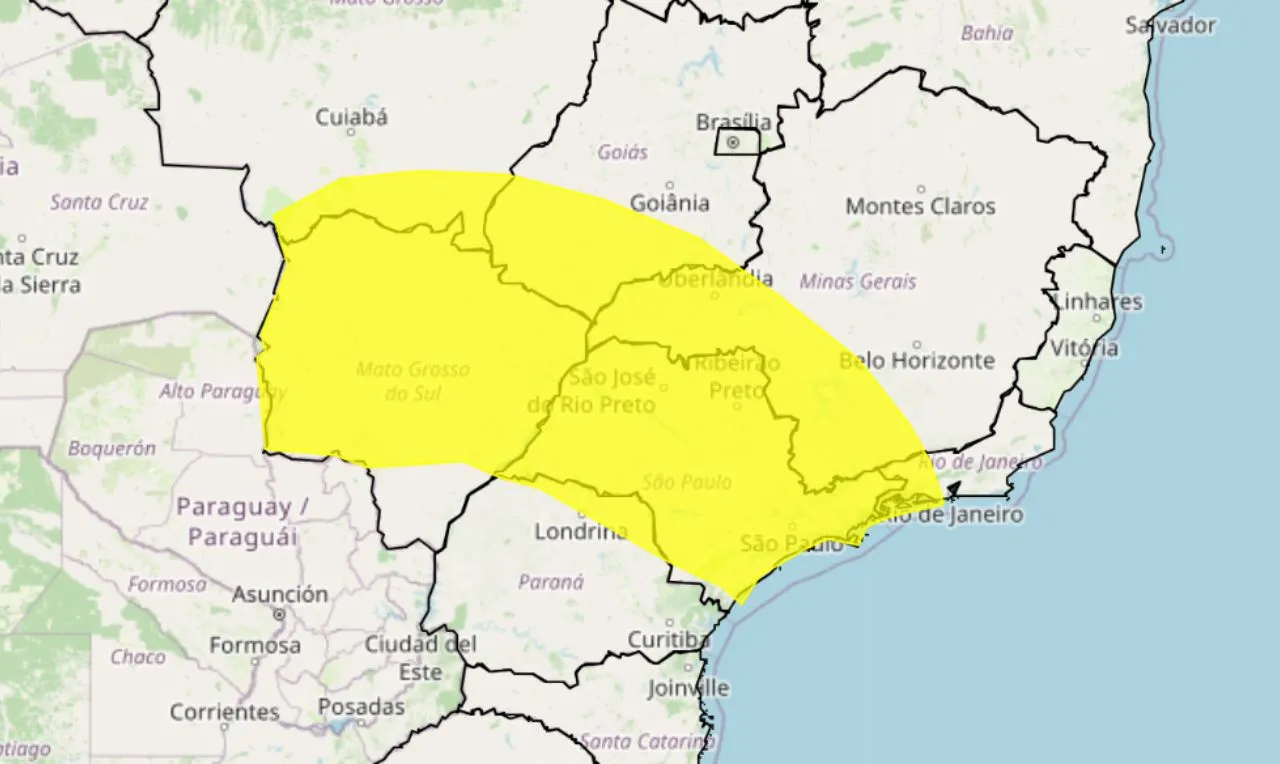 O Instituto Nacional de Meteorologia emitiu alerta amarelo para tempestade com acúmulos de chuva entre 20 e 30 mm/h ou até 50 mm/dia, ventos intensos (40-60 km/h), com início nesta sexta-feira (17) finalizando às 10h00 de sábado (18). Os riscos são: baixo risco de corte de energia elétrica, queda de galhos de árvores, alagamentos e de descargas elétricas.