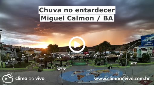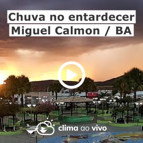 A câmera do Clima Ao Vivo instalada na Sede da Heptanet em Miguel Calmon / BA registrou chuva com um belo entardecer nesta quinta-feira (19). Confira o vídeo exclusivo: