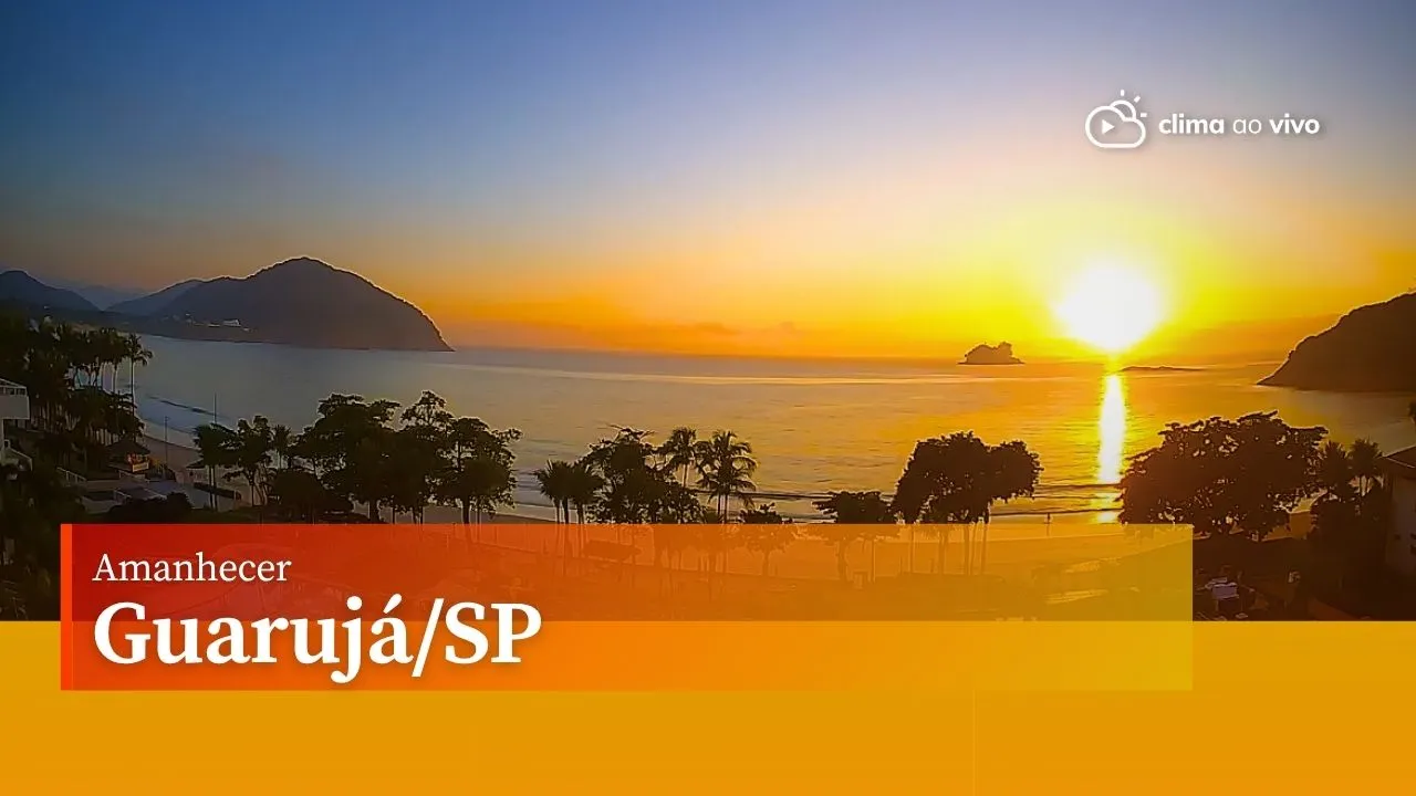 Uma das câmeras da Clima ao Vivo no Guarujá/SP, em parceria com o Jequitimar Guarujá Resort & SPA by Accor, registrou um belíssimo amanhecer. E para quem deseja um fim de semana de lazer, o Destino On, traz alguns pontos turísticos interessantes para os vistantes. A previsão é de sol e períodos de nebulosidade, mas sem expectativa de chuva, a máxima chega aos 26°C, com a mínima de 23°C.