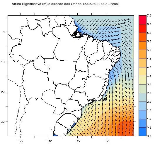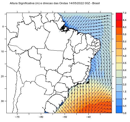 Figura 1: Altura significativa e direção das ondas 14/05 – Fonte Climatempo