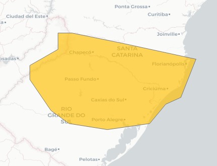 Todas as cidades do Rio Grande do Sul e Santa Catarina onde o Clima Ao Vivo possui câmeras estão dentro do alerta: