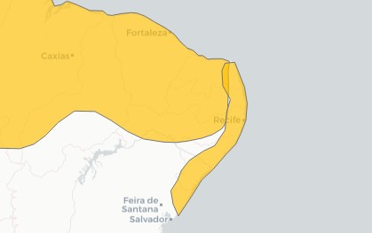 Algumas cidades do Rio Grande do Norte, Bahia, Pernambuco, Paraíba e Sergipe onde o Clima possui câmeras estão dentro do alerta: