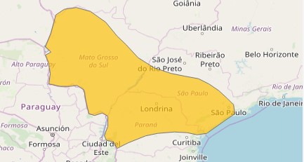 Todas as cidades do estado de São Paulo, Mato Grosso do Sul e Paraná onde o Clima Ao Vivo possui câmeras que estão dentro desse alerta do INMET.