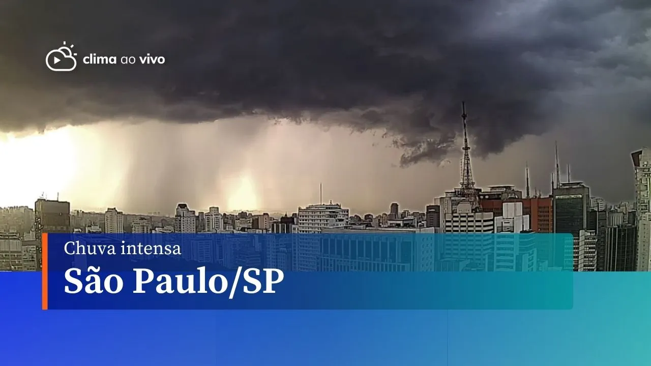 Um temporal em São Paulo atingiu a região na tarde desta segunda-feira (16). Três câmeras da Clima ao Vivo, em parceria com a Folk - Paulista Wall Street capturaram a chegada da chuva intensa, raios e ventania.